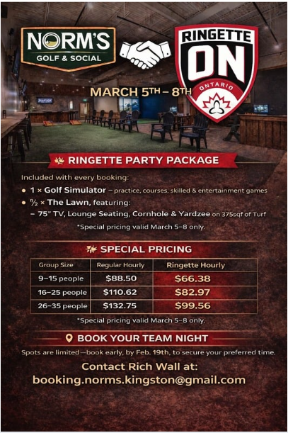 Gadar will also be on-site Thursday (12pm to 7pm), Friday (9am to 5pm) and Saturday (9am to 5pm) with a selection of ringette and event merchandise!